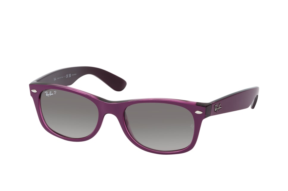 Ray-Ban New Wayfarer RB 2132 6606M3, Rechteckige Sonnenbrille Unisex. Farbe: Lila, Größe: Small, Rahmentyp: FULLFRAME, Brillenbreite: 135mm, Glashöhe: 36mm, Material: Kunststoff. Stegbreite: 18mm. Glasfarbe: Grau. Mit UV400-Filter. Hersteller: Luxottica Fashion Brillen Vertriebs GmbH. Style: CLASSIC