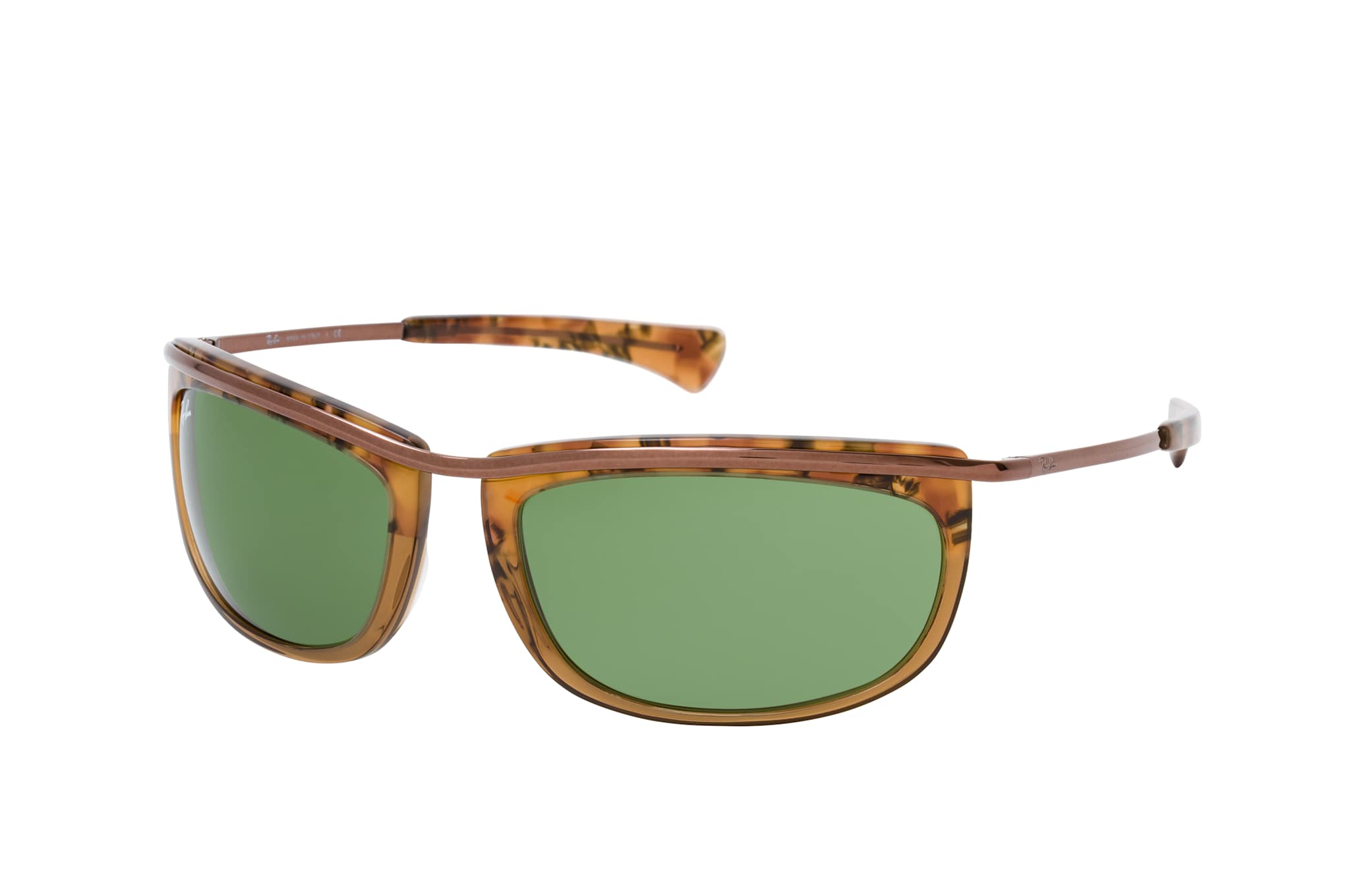 Ray-Ban Olympian I RB 2319 128714, Rechteckige Sonnenbrille Unisex. Farbe: Havana, Größe: Medium, Rahmentyp: FULLFRAME, Brillenbreite: 147mm, Glashöhe: 38mm, Material: Kunststoff/Metall. Stegbreite: 19mm. Glasfarbe: Grün. Mit UV400-Filter. Hersteller: Luxottica Group S.p.A. Style: CLASSIC