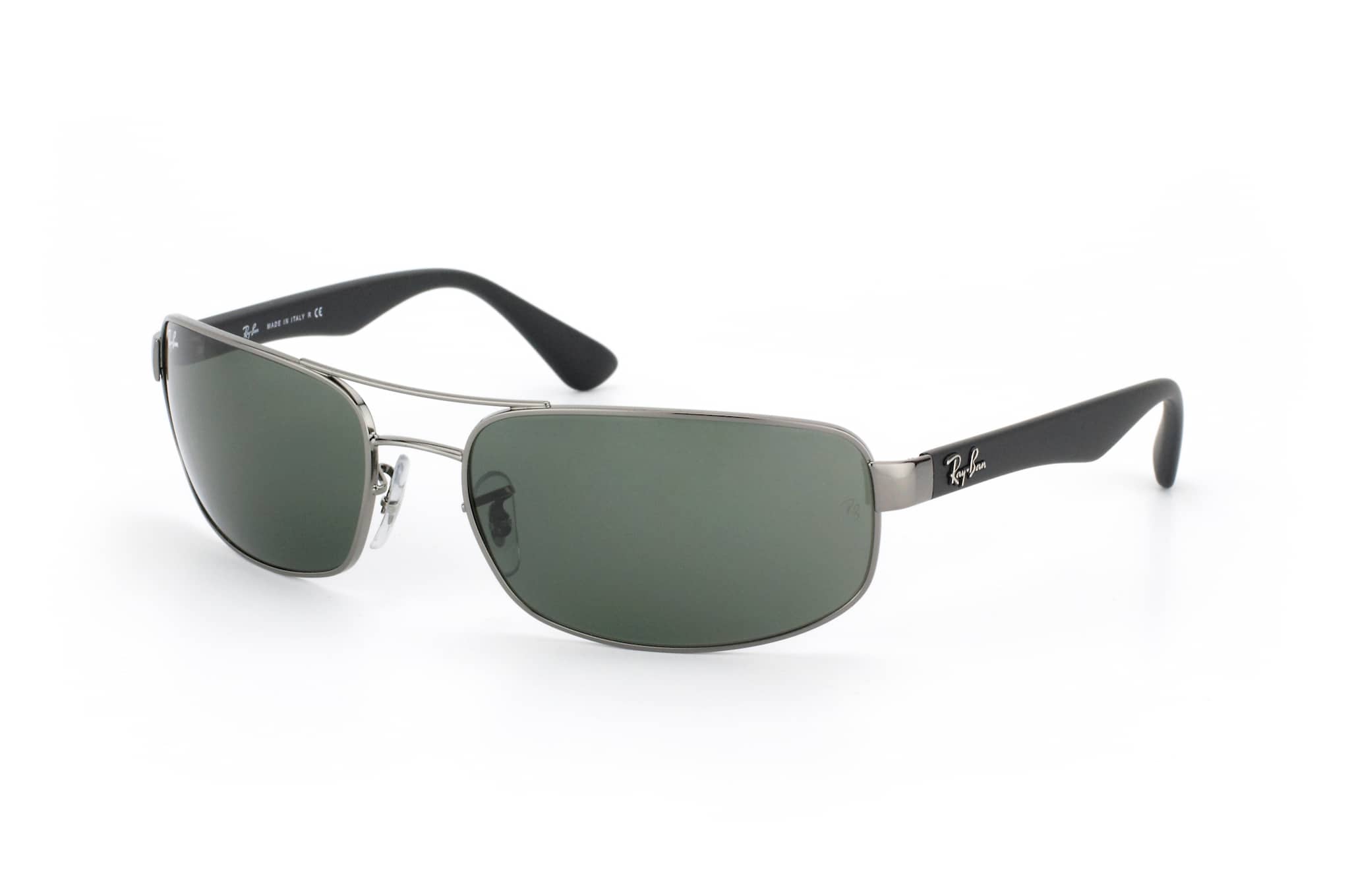 Ray-Ban RB 3445 004, Rechteckige Sonnenbrille Herren. Farbe: Dunkelgrau, Größe: Medium, Rahmentyp: FULLFRAME, Brillenbreite: 139mm, Glashöhe: 38mm, Material: Metall/Kunststoff. Stegbreite: 17mm. Glasfarbe: Grün. Mit UV400-Filter. Hersteller: Luxottica Group S.p.A. Style: MODERN