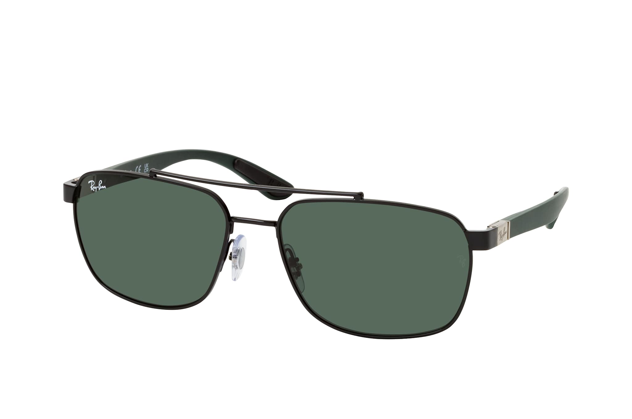 Ray-Ban RB 3701 002/71, Aviator Sonnenbrille Herren. Farbe: Schwarz, Größe: Medium, Rahmentyp: FULLFRAME, Brillenbreite: 141mm, Glashöhe: 44mm, Material: Metall. Stegbreite: 17mm. Glasfarbe: Grün. Mit UV400-Filter. Hersteller: Luxottica Group S.p.A. Style: