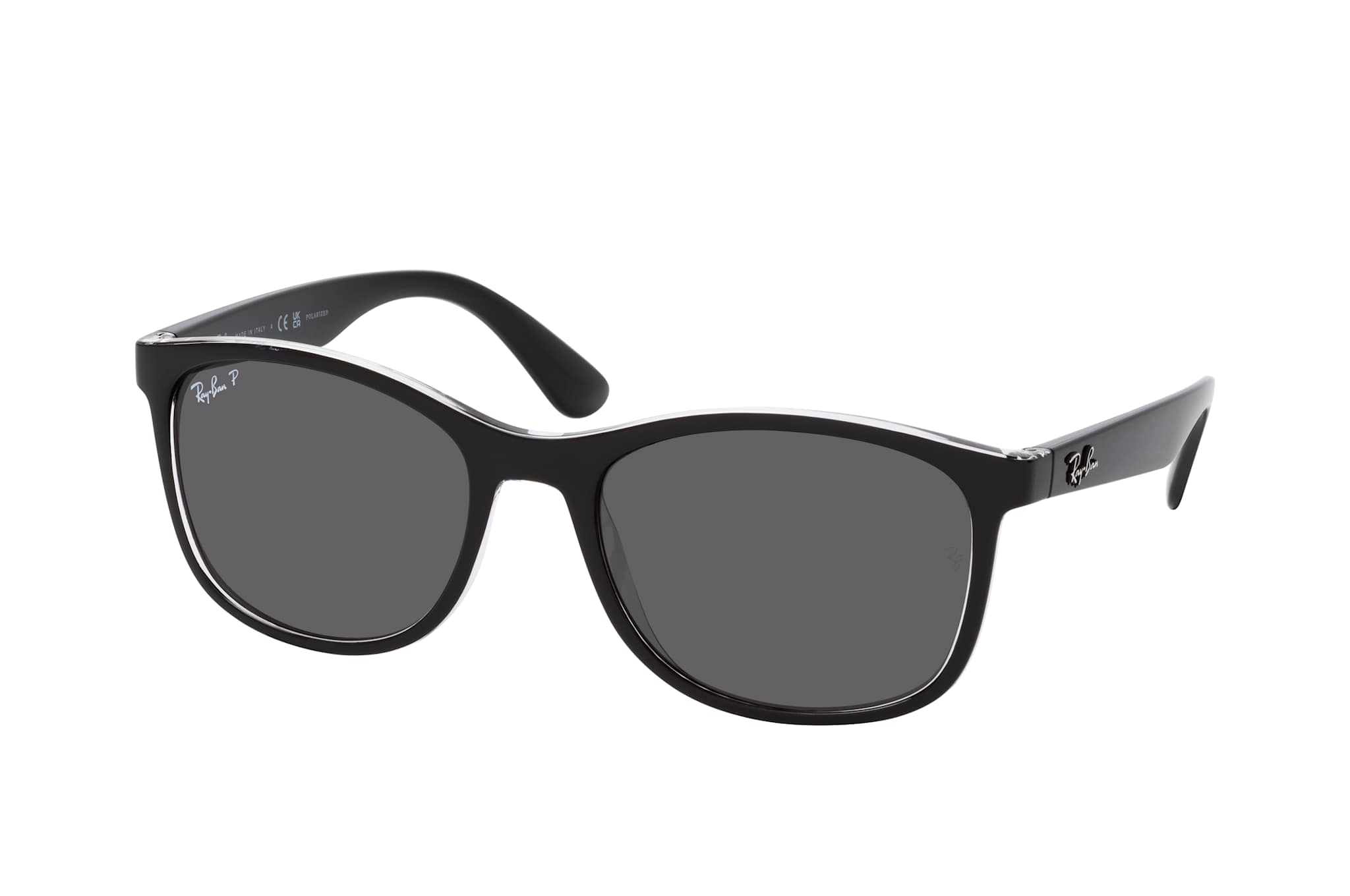 Ray-Ban RB 4374 603948, Quadratische Sonnenbrille Unisex. Farbe: Schwarz, Größe: Medium, Rahmentyp: FULLFRAME, Brillenbreite: 145mm, Glashöhe: 45mm, Material: Kunststoff. Stegbreite: 19mm. Glasfarbe: Grau. Mit UV400-Filter. Hersteller: Luxottica Group S.p.A. Style: CLASSIC