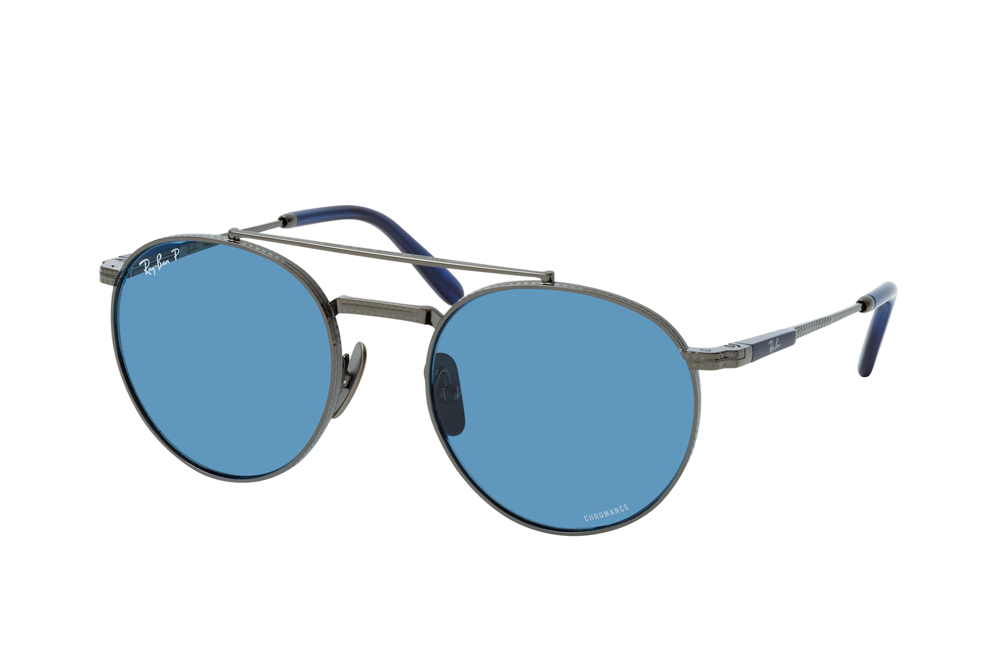 Ray-Ban Round II Titan RB 8237 3142S2, Runde Sonnenbrille Unisex. Farbe: Silber, Größe: Medium, Rahmentyp: FULLFRAME, Brillenbreite: 139mm, Glashöhe: 50mm, Material: Metall/Titan. Stegbreite: 20mm. Glasfarbe: Blau. Mit UV400-Filter. Hersteller: Luxottica Fashion Brillen Vertriebs GmbH. Style: MODERN