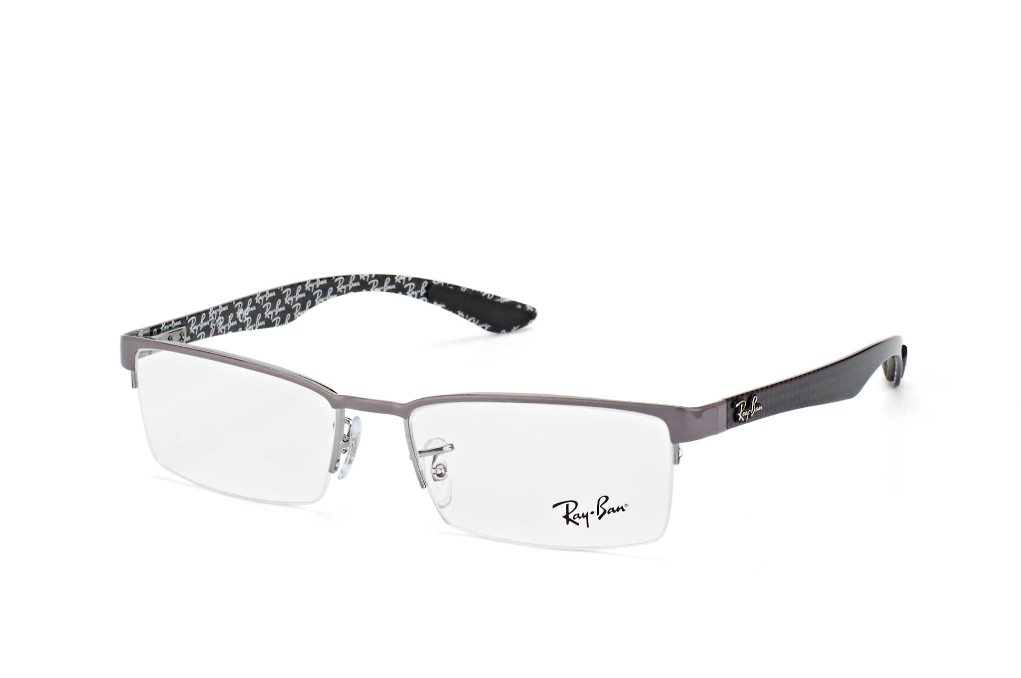 Ray-Ban RX 8412 2893, Rechteckige Brille Herren. Farbe: Hellgrau, Größe: Medium, Rahmentyp: HALFFRAME, Brillenbreite: 135mm, Glashöhe: 31mm, Material: Metall/Carbon. Stegbreite: 17mm. Glasfarbe: . Glasmaterial: Carbon/Metall.Hersteller: Luxottica Group S.p.A. Style: EXTRAVAGANT