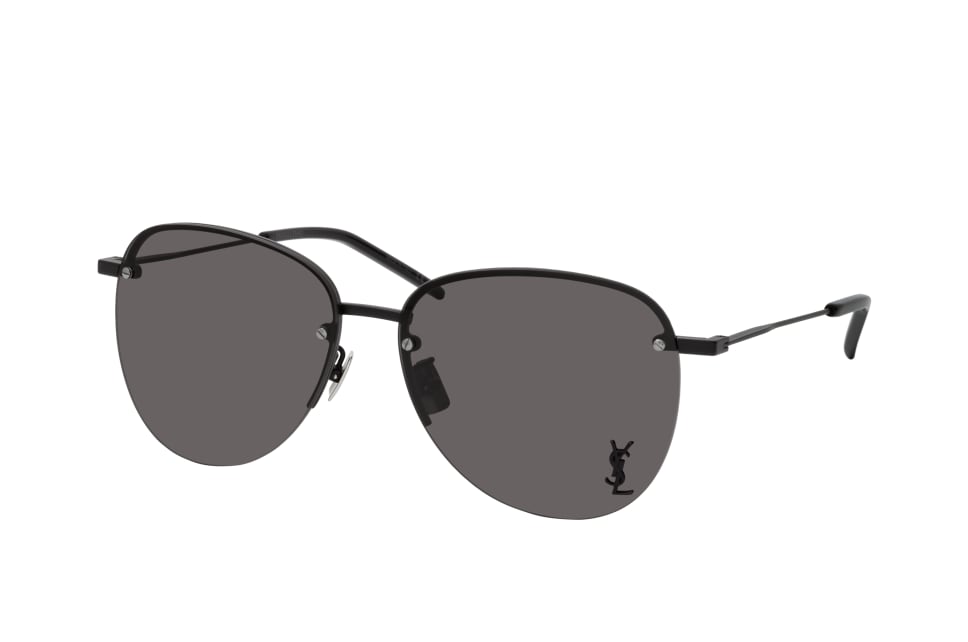 Saint Laurent SL 328/K M 001, Aviator Sonnenbrille Unisex. Farbe: Schwarz, Größe: Medium, Rahmentyp: HALFFRAME, Brillenbreite: 147mm, Glashöhe: 54mm, Material: Metall. Stegbreite: 14mm. Glasfarbe: Grau. Mit UV400-Filter. Hersteller: Kering Eyewear DACH GmbH. Style: MODERN