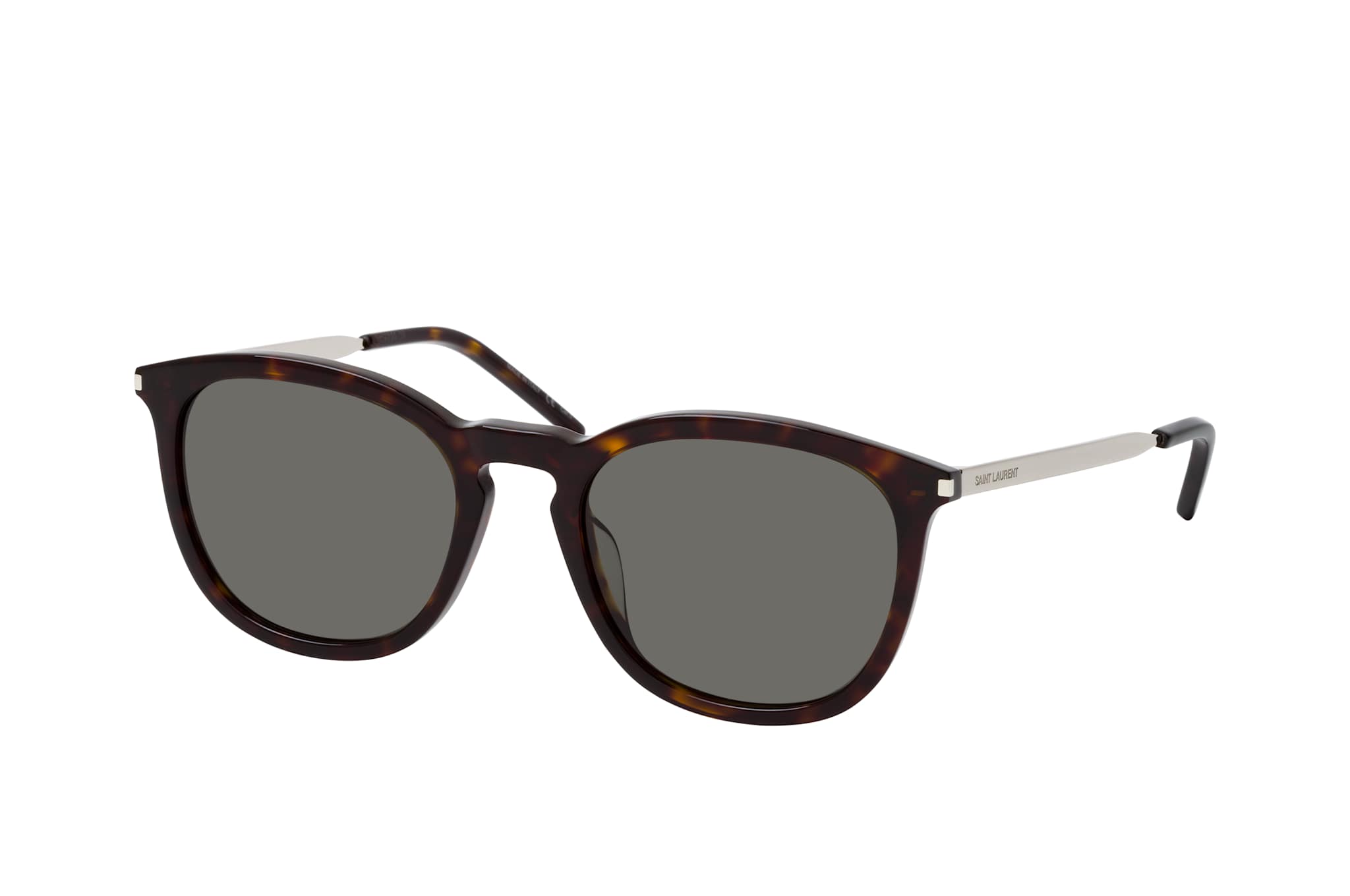 Saint Laurent SL 360 002, Runde Sonnenbrille Herren. Farbe: Havana, Größe: Medium, Rahmentyp: FULLFRAME, Brillenbreite: 139mm, Glashöhe: 44mm, Material: Kunststoff/Metall. Stegbreite: 21mm. Glasfarbe: Grau. Mit UV400-Filter. Hersteller: Kering Eyewear DACH GmbH. Style: MODERN