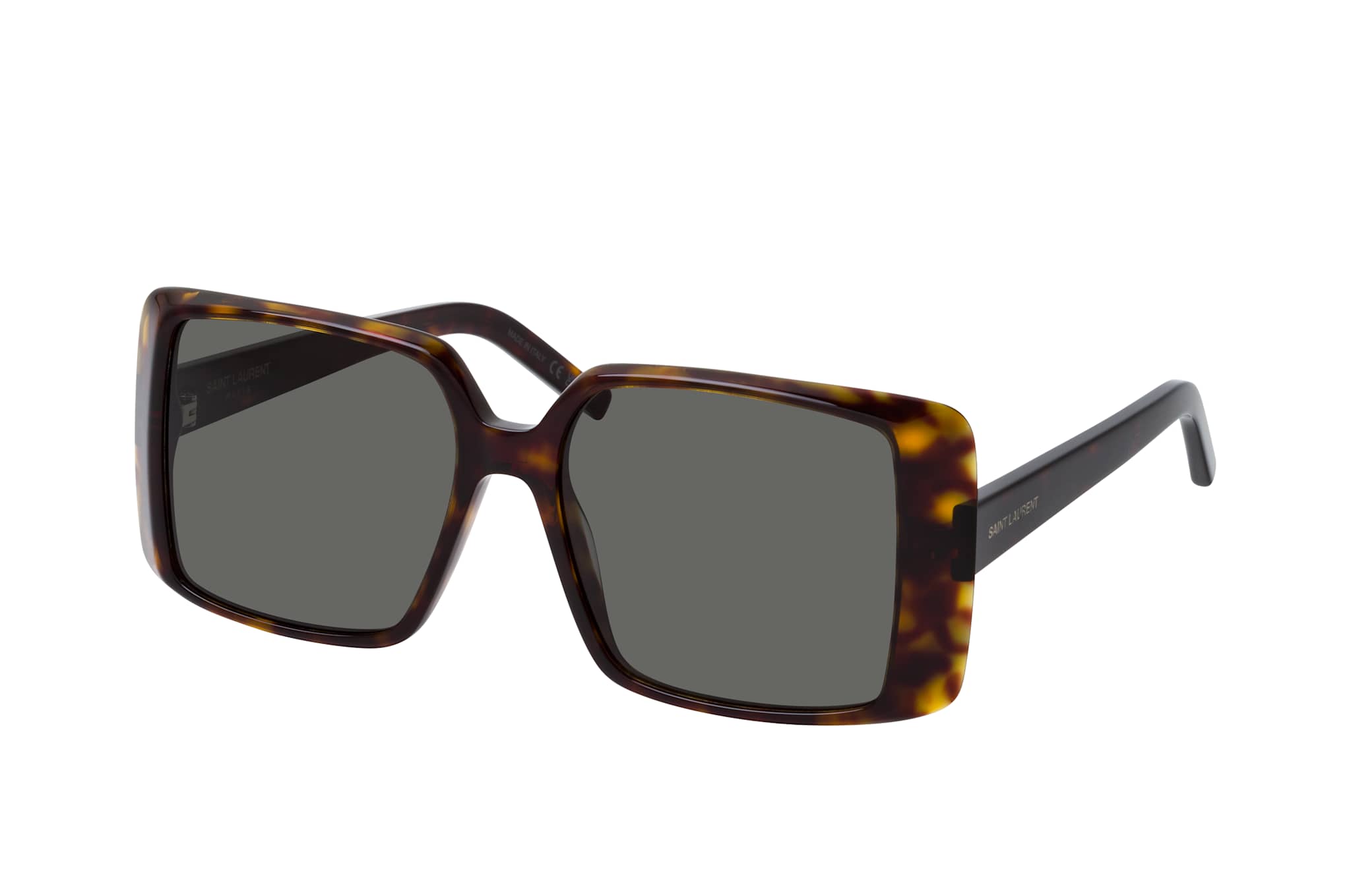 Saint Laurent SL 451 003, Quadratische Sonnenbrille Damen. Farbe: Havana, Größe: Medium, Rahmentyp: FULLFRAME, Brillenbreite: 144mm, Glashöhe: 49mm, Material: Kunststoff. Stegbreite: 16mm. Glasfarbe: Grau. Mit UV400-Filter. Hersteller: Kering Eyewear DACH GmbH. Style: MODERN