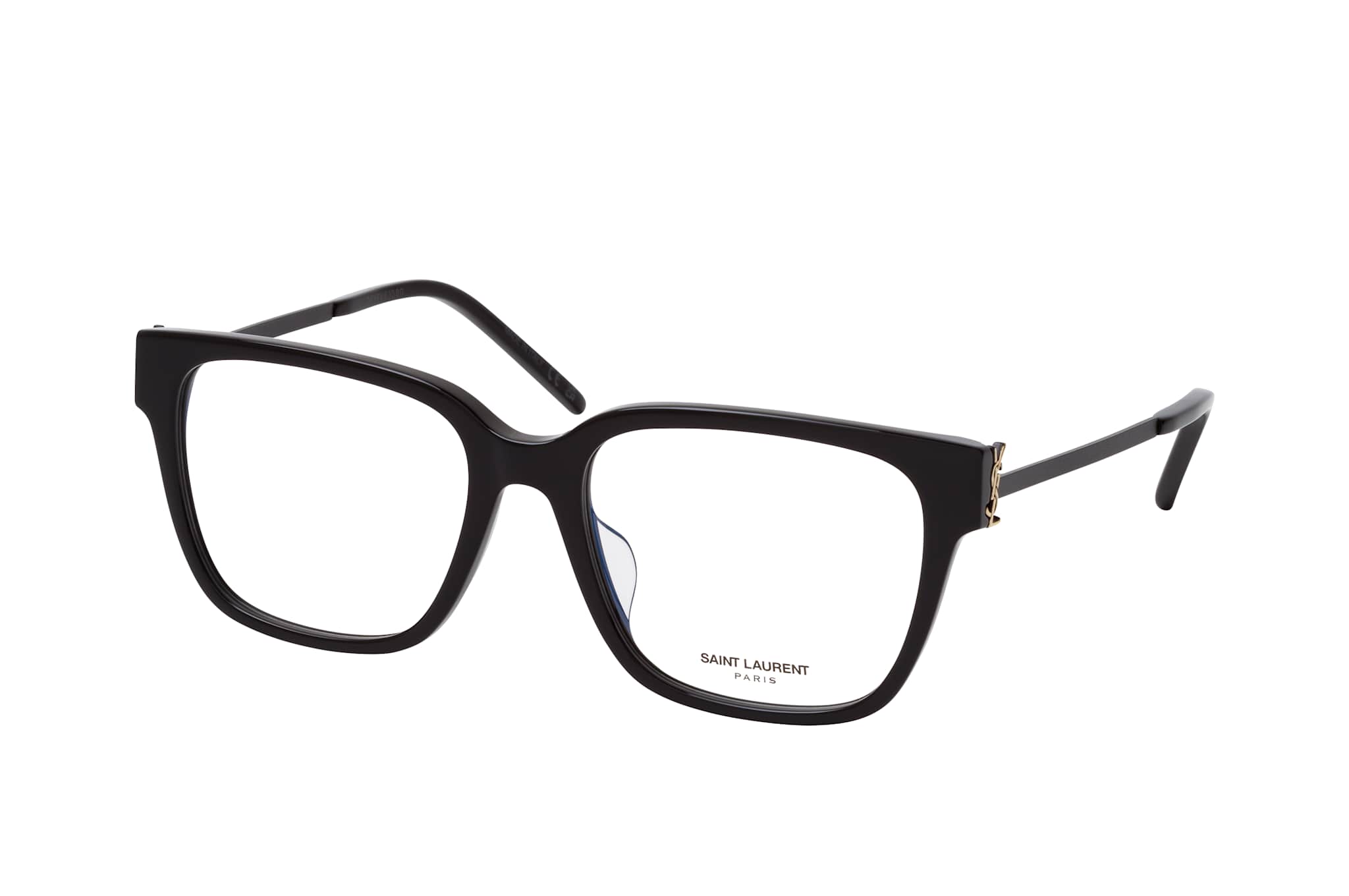 Saint Laurent SL M48O_A/F 001, Quadratische Brille Damen. Farbe: Schwarz, Größe: Medium, Rahmentyp: FULLFRAME, Brillenbreite: 140mm, Glashöhe: 44mm, Material: Kunststoff/Metall. Stegbreite: 17mm. Glasfarbe: . Glasmaterial: Metall/Kunststoff.Hersteller: Kering Eyewear DACH GmbH. Style: CLASSIC