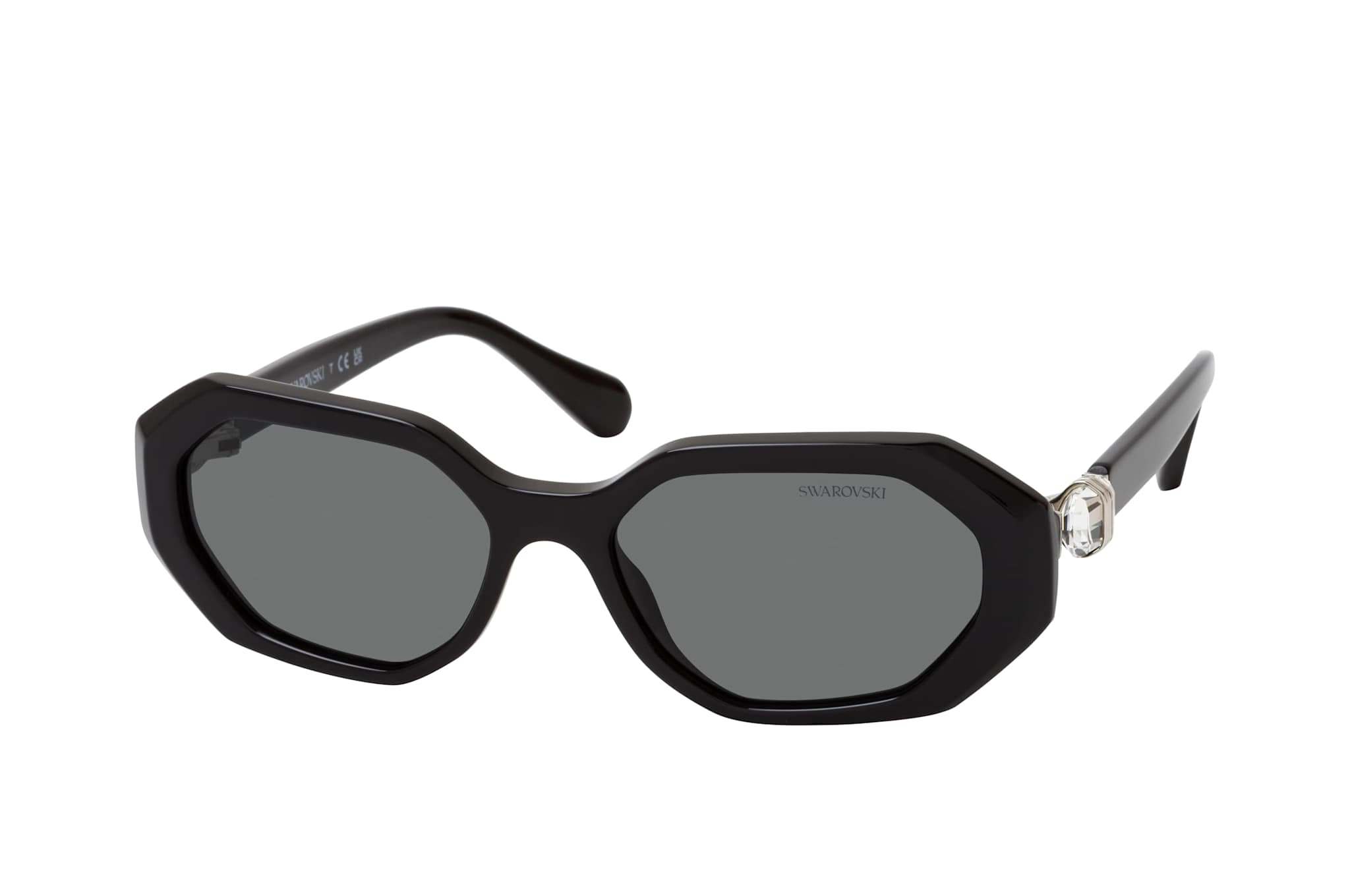 Swarovski SK 6028 100187, Rechteckige Sonnenbrille Damen. Farbe: Schwarz, Größe: Medium, Rahmentyp: FULLFRAME, Brillenbreite: 139mm, Glashöhe: 38mm, Material: Kunststoff. Stegbreite: 17mm. Glasfarbe: Grau. Mit UV400-Filter. Hersteller: Luxottica Group S.p.A. Style: