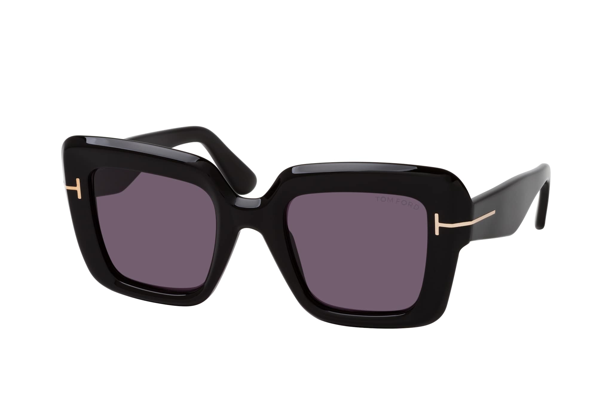Tom Ford FT 1157 01A, Quadratische Sonnenbrille Damen. Farbe: Schwarz, Größe: Medium, Rahmentyp: FULLFRAME, Brillenbreite: 148mm, Glashöhe: 44mm, Material: Kunststoff. Stegbreite: 23mm. Glasfarbe: Grau. Mit UV400-Filter. Hersteller: Marcolin (Deutschland) GmbH. Style:
