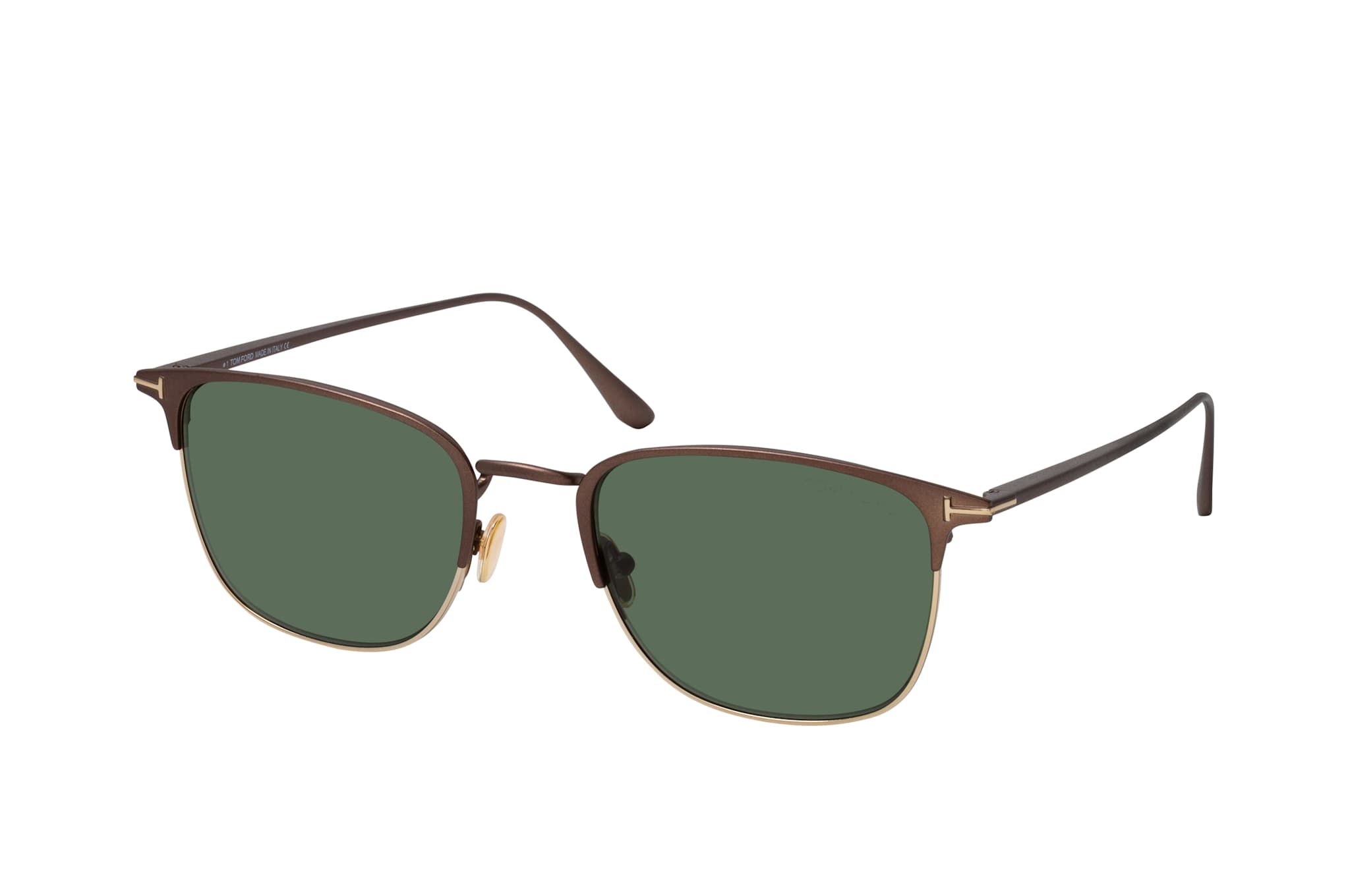 Tom Ford Liv FT 0851 49N, Quadratische Sonnenbrille Herren. Farbe: Braun, Größe: Medium, Rahmentyp: FULLFRAME, Brillenbreite: 143mm, Glashöhe: 43mm, Material: Metall. Stegbreite: 20mm. Glasfarbe: Grün. Mit UV400-Filter. Hersteller: Marcolin SpA. Style: MODERN