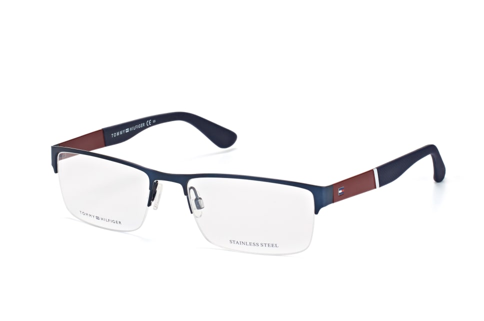Tommy Hilfiger TH 1524 PJP, Rechteckige Brille Herren. Farbe: Blau, Größe: Medium, Rahmentyp: HALFFRAME, Brillenbreite: 137mm, Glashöhe: 34mm, Material: Metall. Stegbreite: 18mm. Glasfarbe: . Glasmaterial: Metall/Metall.Hersteller: Safilo GmbH. Style: CLASSIC