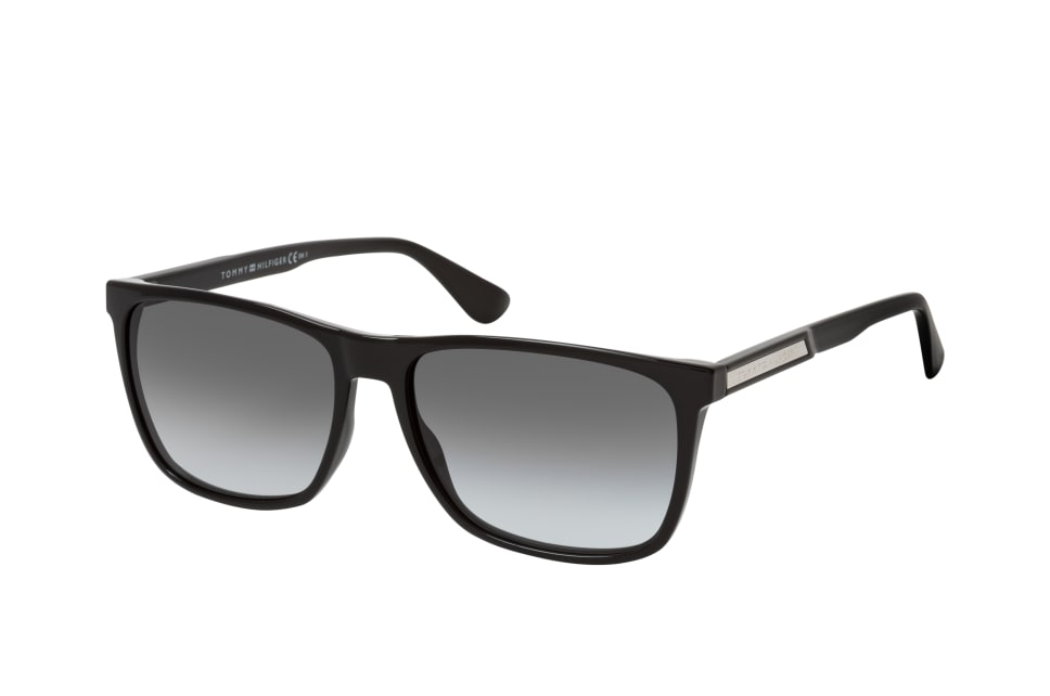 Tommy Hilfiger TH 1547/S 807, Rechteckige Sonnenbrille Herren. Farbe: Schwarz, Größe: Medium, Rahmentyp: FULLFRAME, Brillenbreite: 143mm, Glashöhe: 42mm, Material: Kunststoff. Stegbreite: 16mm. Glasfarbe: Grau. Mit UV400-Filter. Hersteller: Safilo GmbH. Style: MODERN