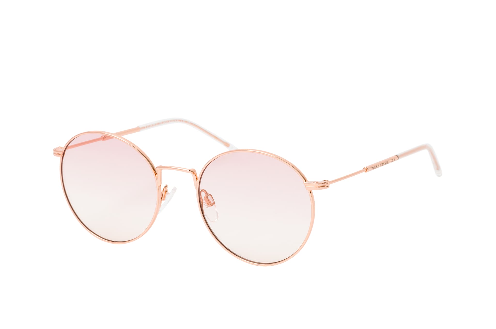 Tommy Hilfiger TH 1586/S DDB, Runde Sonnenbrille Damen. Farbe: Goldfarben, Größe: Medium, Rahmentyp: FULLFRAME, Brillenbreite: 132mm, Glashöhe: 49mm, Material: Metall. Stegbreite: 19mm. Glasfarbe: Rosa. Mit UV400-Filter. Hersteller: Safilo GmbH. Style: MODERN