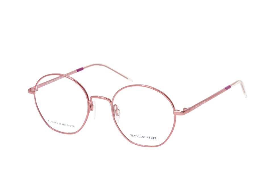Tommy Hilfiger TH 1681 35J, Runde Brille Damen. Farbe: Rosa, Größe: Medium, Rahmentyp: FULLFRAME, Brillenbreite: 130mm, Glashöhe: 46mm, Material: Metall. Stegbreite: 20mm. Glasfarbe: . Glasmaterial: Metall/Metall.Hersteller: Safilo GmbH. Style: EXTRAVAGANT