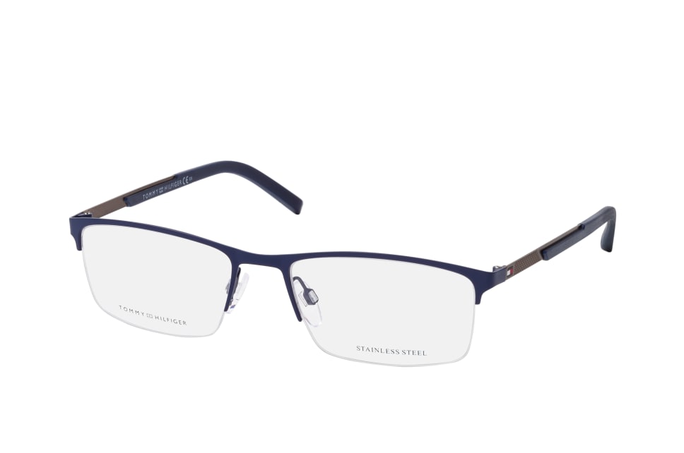 Tommy Hilfiger TH 1692 KU0, Rechteckige Brille Herren. Farbe: Blau, Größe: Medium, Rahmentyp: HALFFRAME, Brillenbreite: 137mm, Glashöhe: 34mm, Material: Metall. Stegbreite: 18mm. Glasfarbe: . Glasmaterial: Metall/Metall.Hersteller: Safilo GmbH. Style: