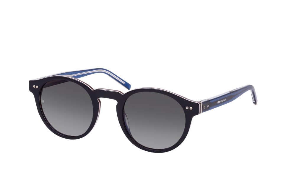 Tommy Hilfiger TH 1795/S PJP, Runde Sonnenbrille Herren. Farbe: Blau, Größe: Medium, Rahmentyp: FULLFRAME, Brillenbreite: 140mm, Glashöhe: 46mm, Material: Kunststoff. Stegbreite: 23mm. Glasfarbe: Grau. Mit UV400-Filter. Hersteller: Safilo GmbH. Style: MODERN