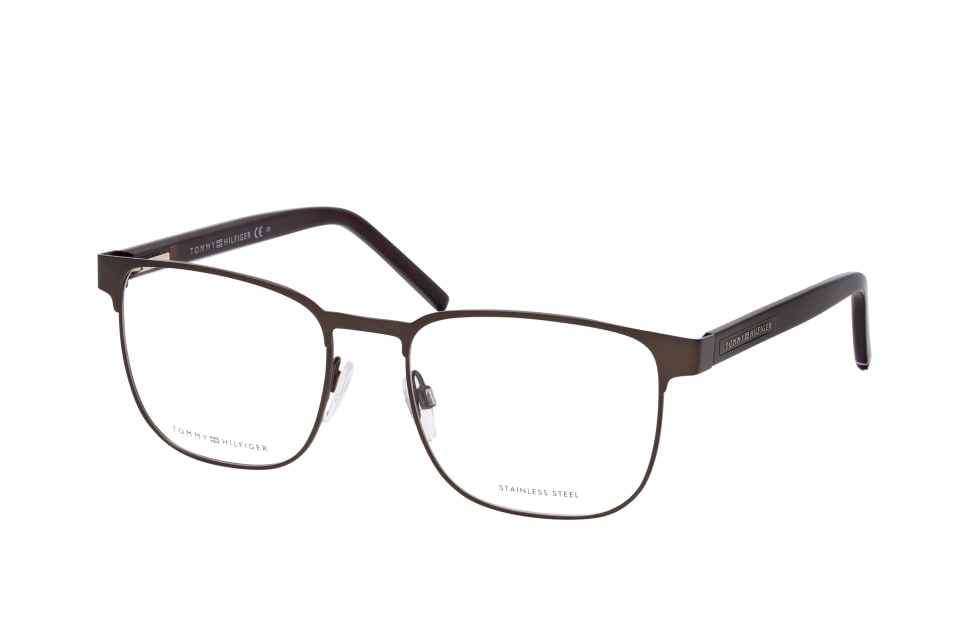 Tommy Hilfiger TH 1943 SVK, Quadratische Brille Herren. Farbe: Grau, Größe: Medium, Rahmentyp: FULLFRAME, Brillenbreite: 140mm, Glashöhe: 44mm, Material: Metall/Kunststoff. Stegbreite: 18mm. Glasfarbe: . Glasmaterial: Kunststoff/Metall.Hersteller: Safilo GmbH. Style: MODERN