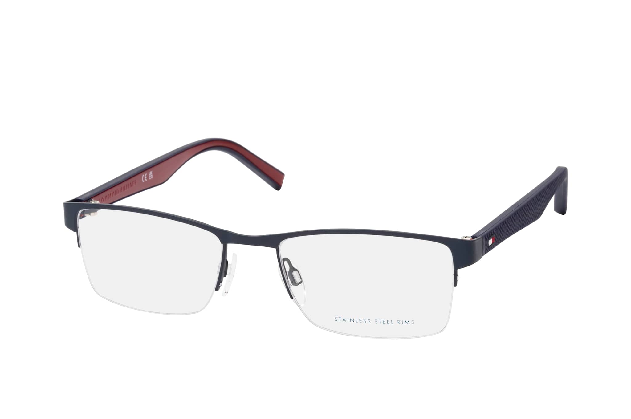 Tommy Hilfiger TH 2047 FLL, Rechteckige Brille Herren. Farbe: Blau, Größe: Medium, Rahmentyp: HALFFRAME, Brillenbreite: 135mm, Glashöhe: 34mm, Material: Metall/Kunststoff. Stegbreite: 18mm. Glasfarbe: . Glasmaterial: Kunststoff/Metall.Hersteller: Safilo GmbH. Style: