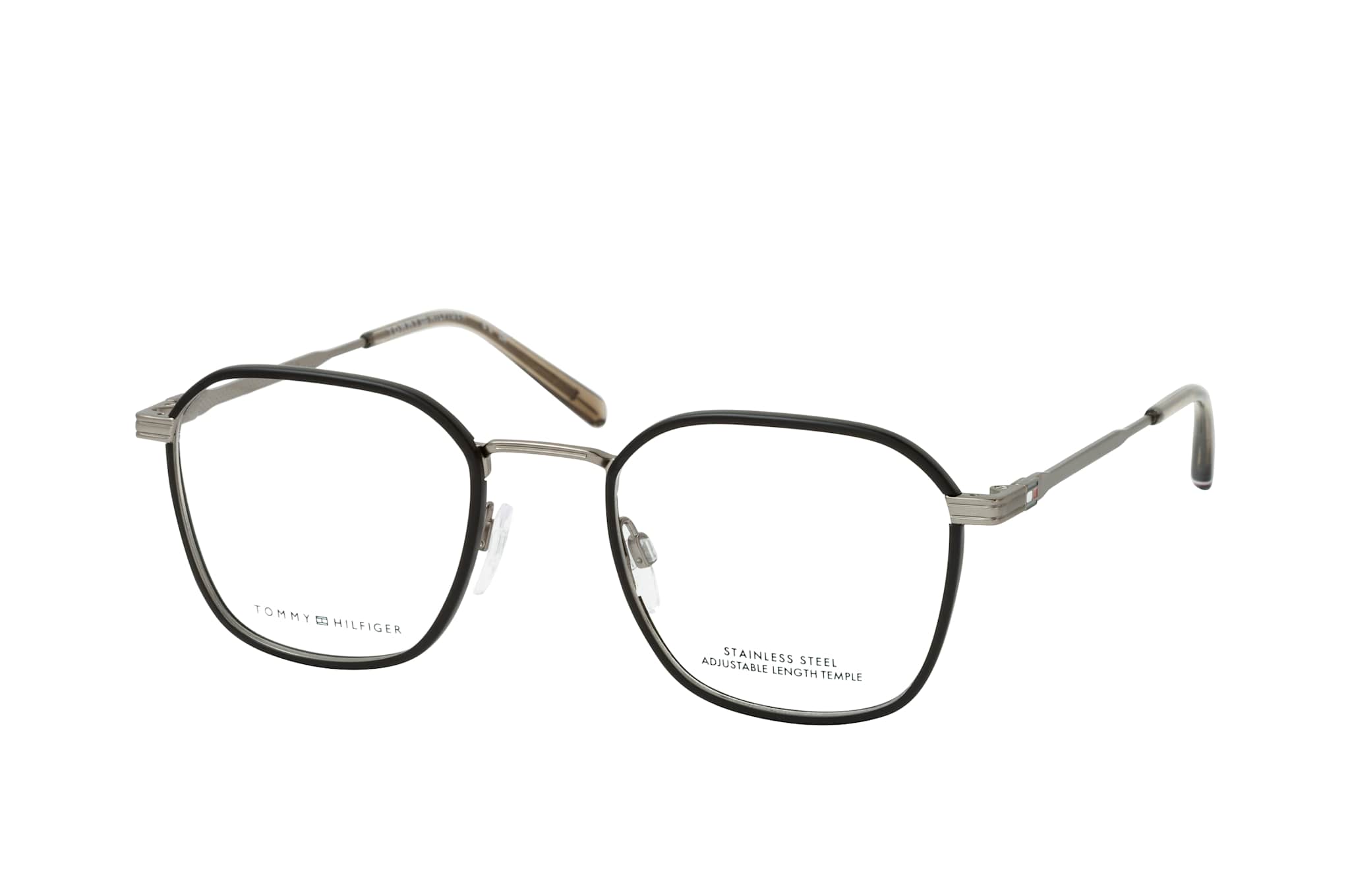 Tommy Hilfiger TH 2136 SVK, Quadratische Brille Herren. Farbe: Schwarz, Größe: Medium, Rahmentyp: FULLFRAME, Brillenbreite: 136mm, Glashöhe: 44mm, Material: Metall. Stegbreite: 21mm. Glasfarbe: . Glasmaterial: Metall/Metall.Hersteller: Safilo GmbH. Style: