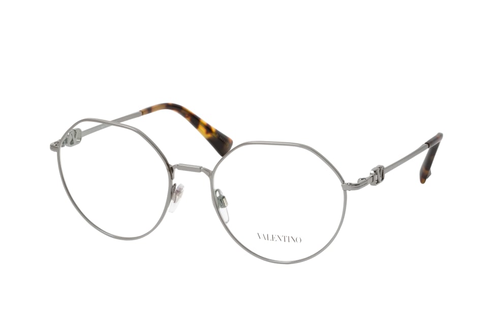 Valentino VA 1021 3005, Runde Brille Damen. Farbe: Silber, Größe: Medium, Rahmentyp: FULLFRAME, Brillenbreite: 135mm, Glashöhe: 50mm, Material: Metall. Stegbreite: 18mm. Glasfarbe: . Glasmaterial: Metall/Metall.Hersteller: Luxottica Fashion Brillen Vertriebs GmbH. Style: EXTRAVAGANT
