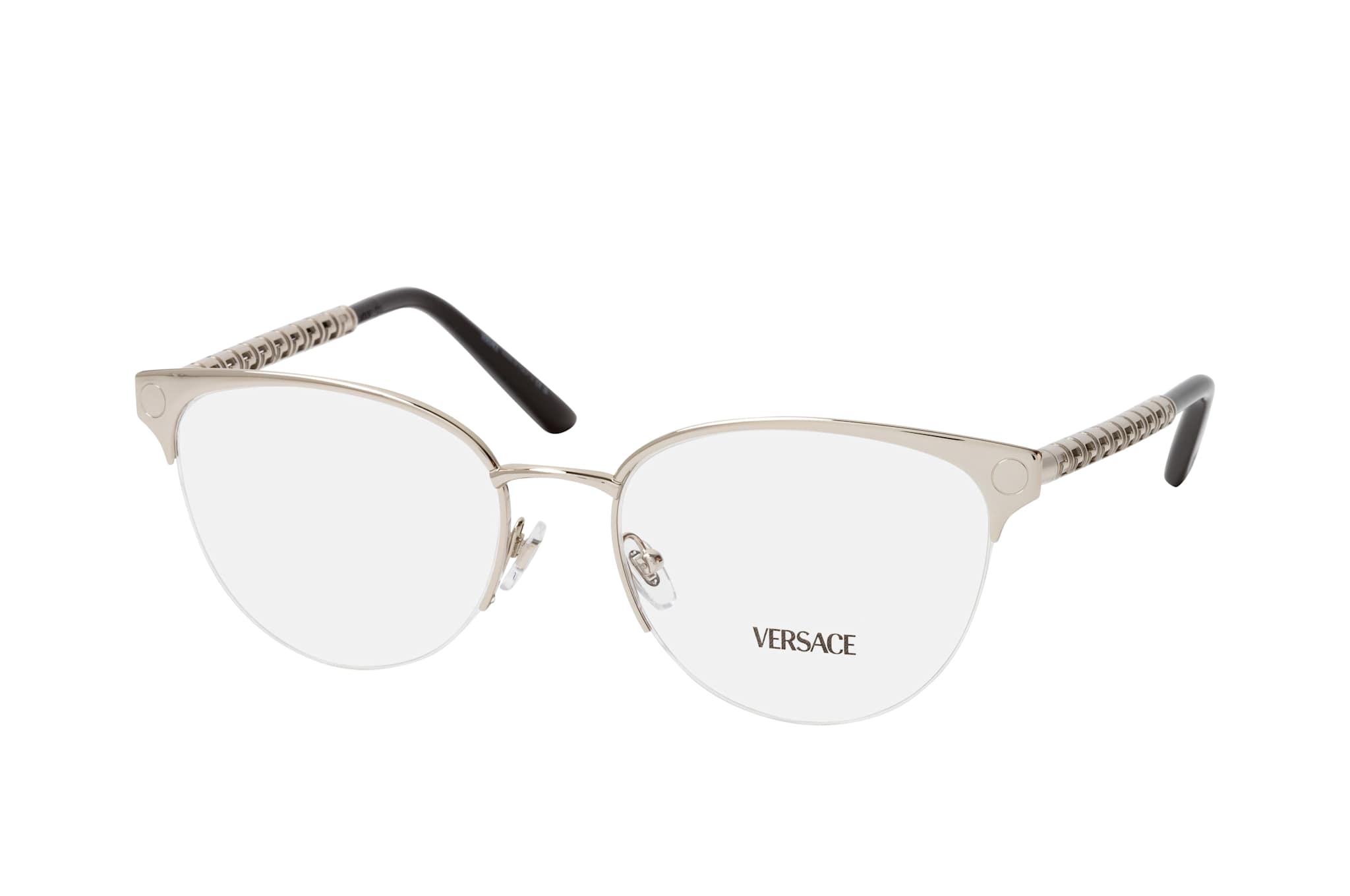 Versace VE 1297 1000, Cat Eye Brille Damen. Farbe: Silber, Größe: Medium, Rahmentyp: HALFFRAME, Brillenbreite: 136mm, Glashöhe: 44mm, Material: Metall. Stegbreite: 18mm. Glasfarbe: . Glasmaterial: Metall/Metall.Hersteller: Luxottica Group S.p.A. Style: