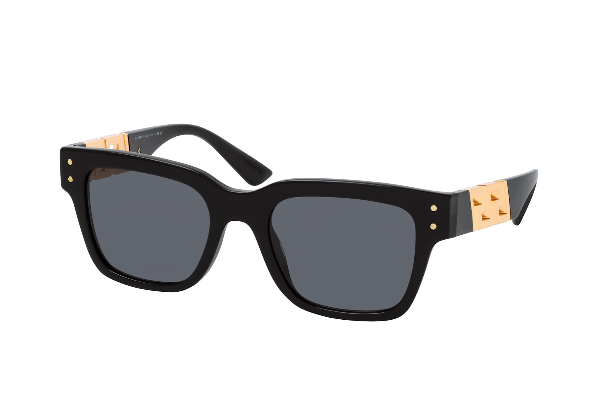 Versace VE 4421 GB1/87, Quadratische Sonnenbrille Herren. Farbe: Schwarz, Größe: Medium, Rahmentyp: FULLFRAME, Brillenbreite: 145mm, Glashöhe: 41mm, Material: Kunststoff/Metall. Stegbreite: 20mm. Glasfarbe: Grau. Mit UV400-Filter. Hersteller: Luxottica Fashion Brillen Vertriebs GmbH. Style:
