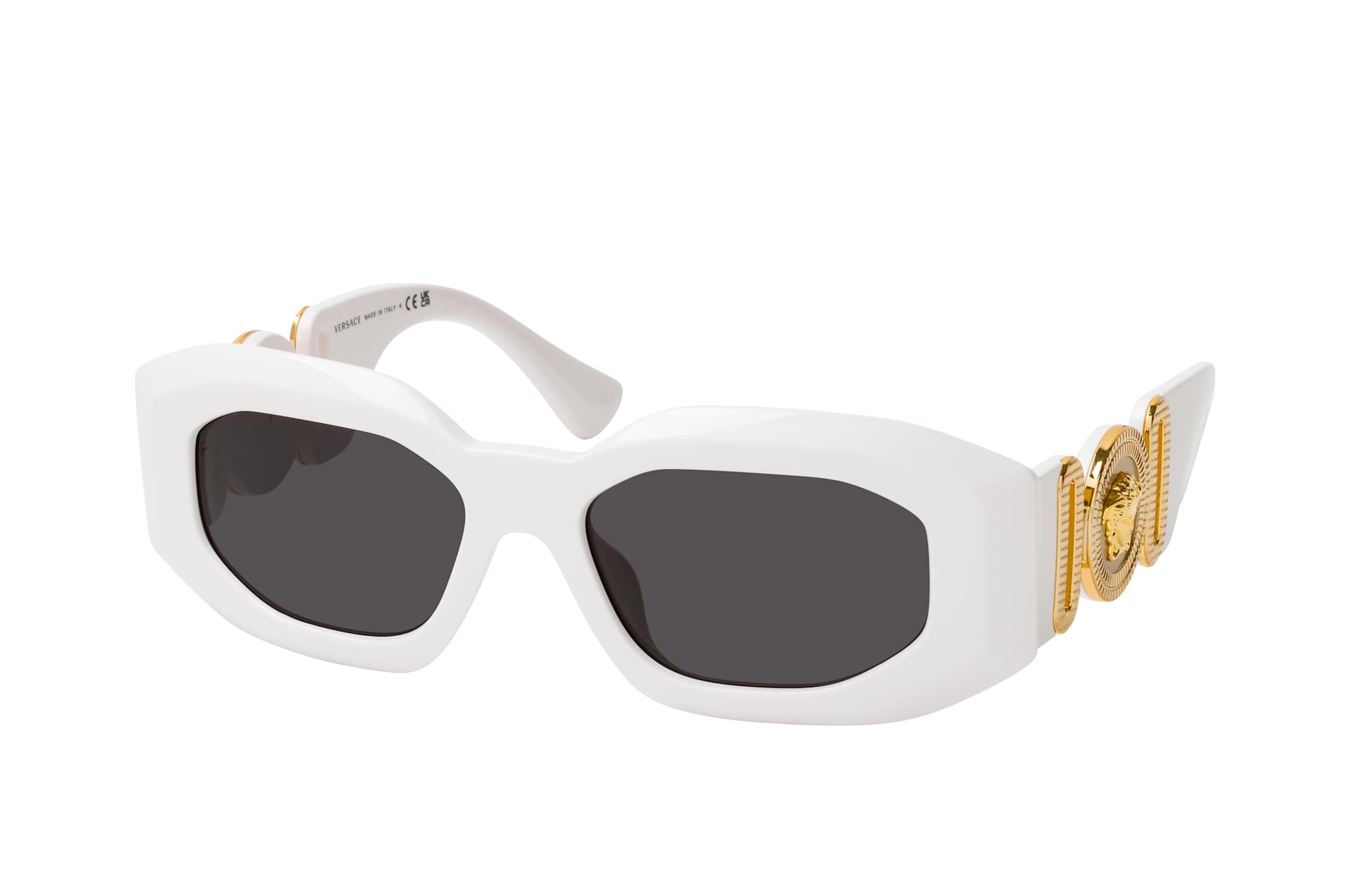 Versace VE 4425U 314/87, Rechteckige Sonnenbrille Unisex. Farbe: Weiss, Größe: Medium, Rahmentyp: FULLFRAME, Brillenbreite: 149mm, Glashöhe: 35mm, Material: Kunststoff. Stegbreite: 18mm. Glasfarbe: Grau. Mit UV400-Filter. Hersteller: Luxottica Fashion Brillen Vertriebs GmbH. Style: