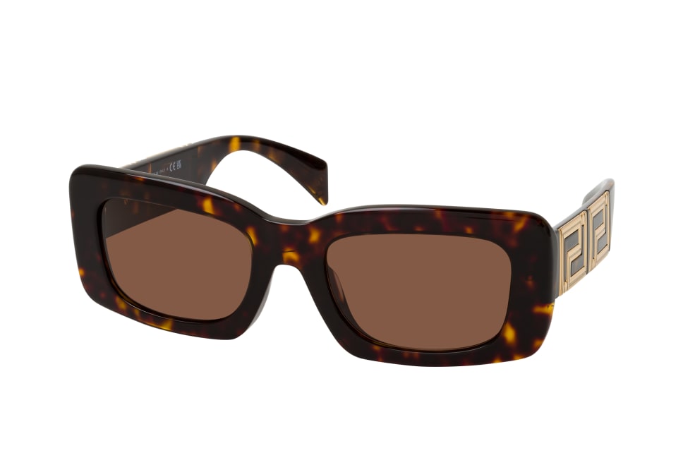 Versace VE 4444U 108/73, Rechteckige Sonnenbrille Damen. Farbe: Havana, Größe: Medium, Rahmentyp: FULLFRAME, Brillenbreite: 147mm, Glashöhe: 36mm, Material: Kunststoff. Stegbreite: 21mm. Glasfarbe: Braun. Mit UV400-Filter. Hersteller: Luxottica Fashion Brillen Vertriebs GmbH. Style:
