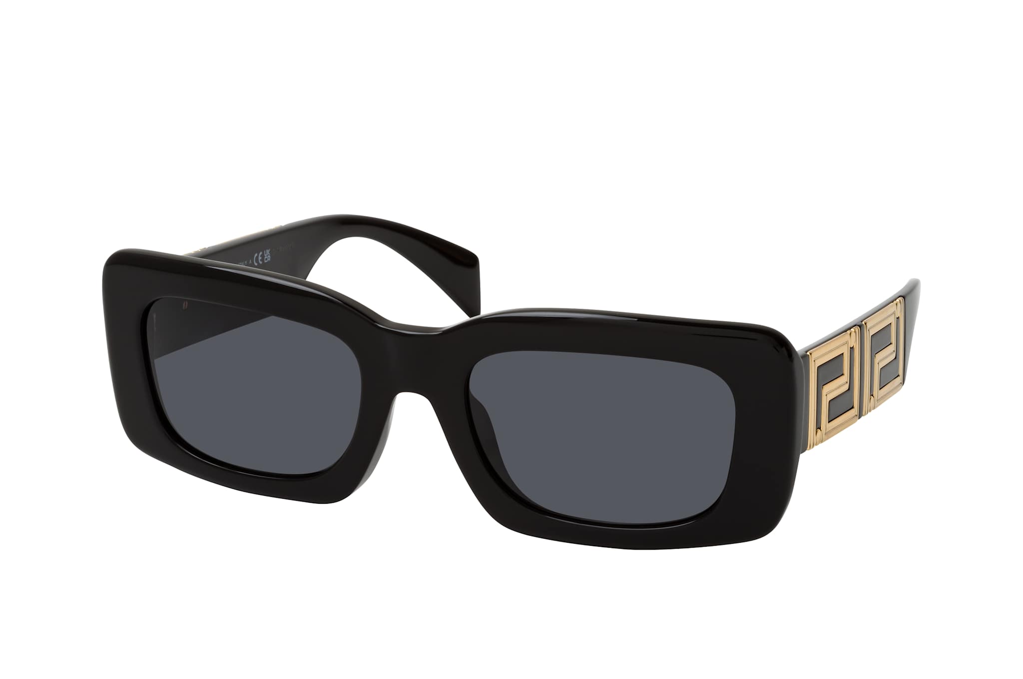 Versace VE 4444U GB1/87, Rechteckige Sonnenbrille Damen. Farbe: Schwarz, Größe: Medium, Rahmentyp: FULLFRAME, Brillenbreite: 147mm, Glashöhe: 36mm, Material: Kunststoff. Stegbreite: 21mm. Glasfarbe: Grau. Mit UV400-Filter. Hersteller: Luxottica Group S.p.A. Style: