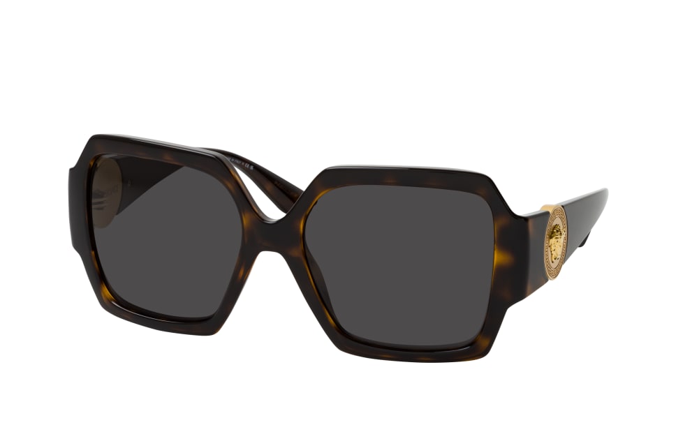 Versace VE 4453 108/87, Quadratische Sonnenbrille Damen. Farbe: Havana, Größe: Medium, Rahmentyp: FULLFRAME, Brillenbreite: 144mm, Glashöhe: 51mm, Material: Kunststoff/Metall. Stegbreite: 17mm. Glasfarbe: Grau. Mit UV400-Filter. Hersteller: Luxottica Fashion Brillen Vertriebs GmbH. Style: