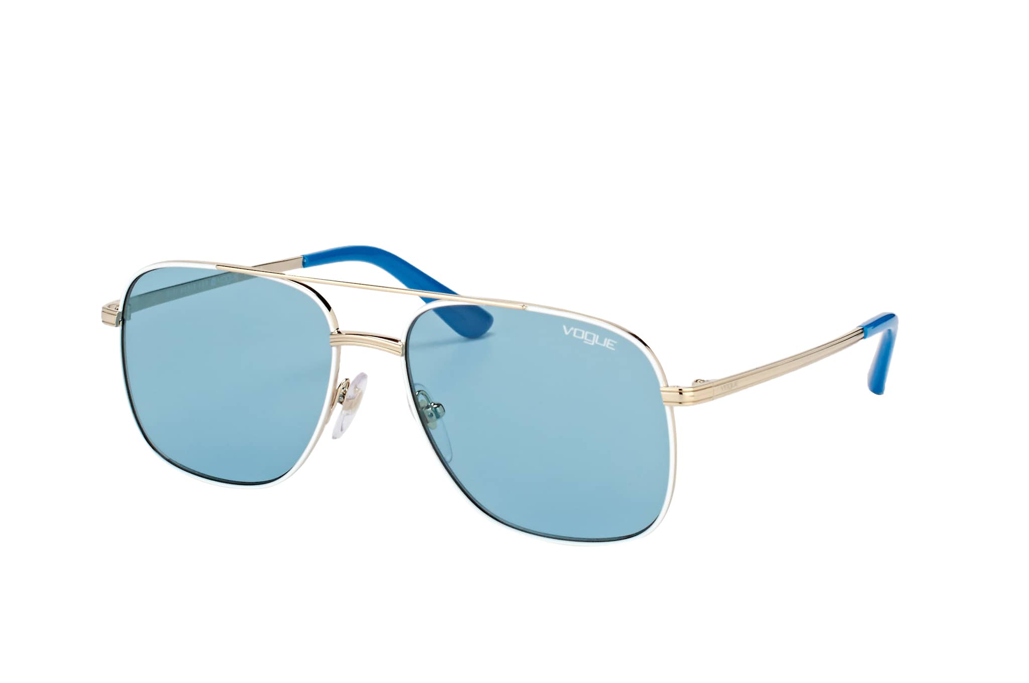 VOGUE Eyewear Gigi Hadid VO 4083S 848/80, Aviator Sonnenbrille Damen. Farbe: Goldfarben, Größe: Medium, Rahmentyp: FULLFRAME, Brillenbreite: 136mm, Glashöhe: 47mm, Material: Metall. Stegbreite: 16mm. Glasfarbe: Blau. Mit UV400-Filter. Hersteller: Luxottica Group S.p.A. Style: EXTRAVAGANT