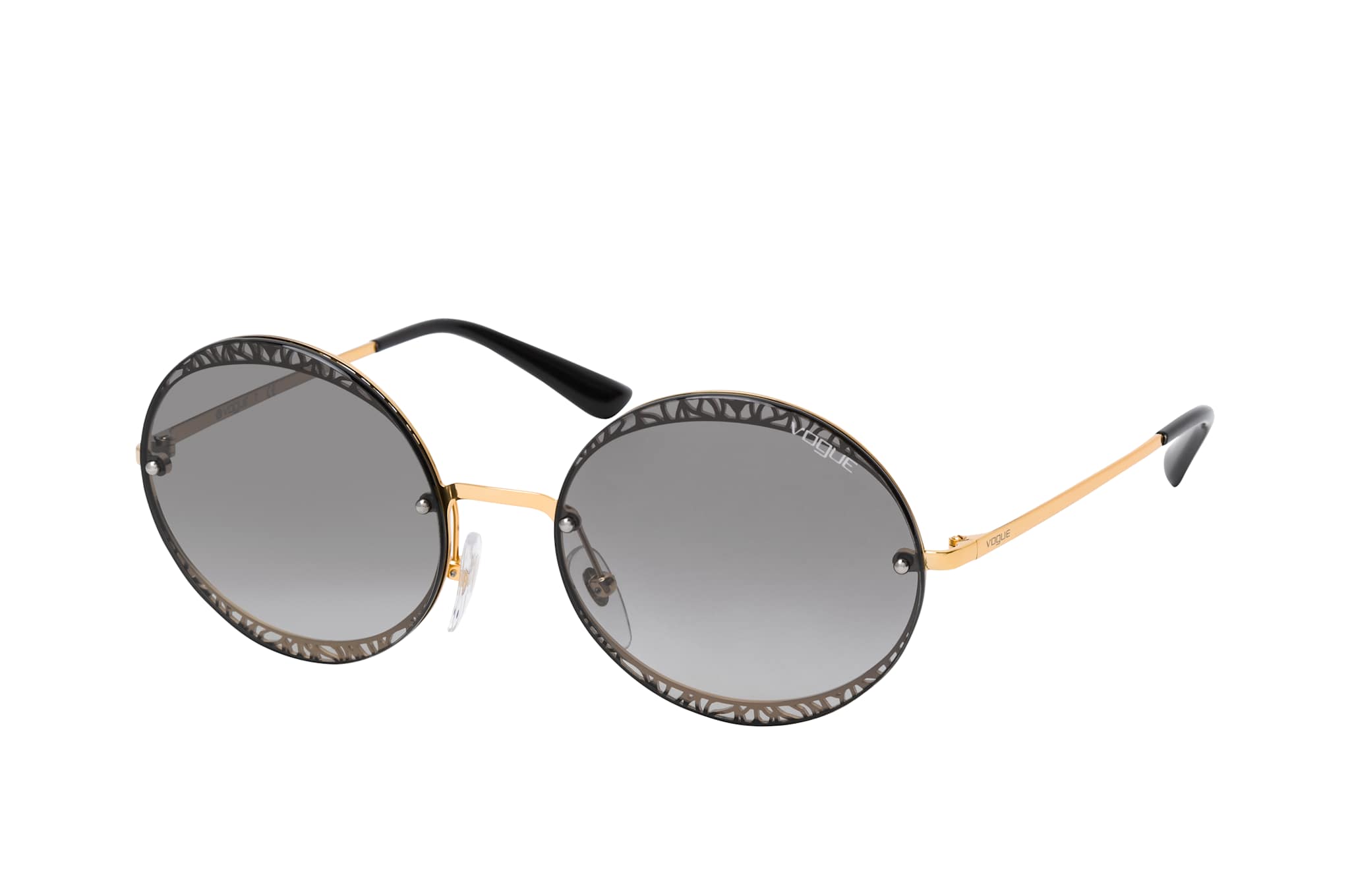 VOGUE Eyewear VO 4118S 280/11, Runde Sonnenbrille Damen. Farbe: Goldfarben, Größe: Medium, Rahmentyp: FRAMELESS, Brillenbreite: 137mm, Glashöhe: 52mm, Material: Metall. Stegbreite: 18mm. Glasfarbe: Grau. Mit UV400-Filter. Hersteller: Luxottica Group S.p.A. Style: EXTRAVAGANT
