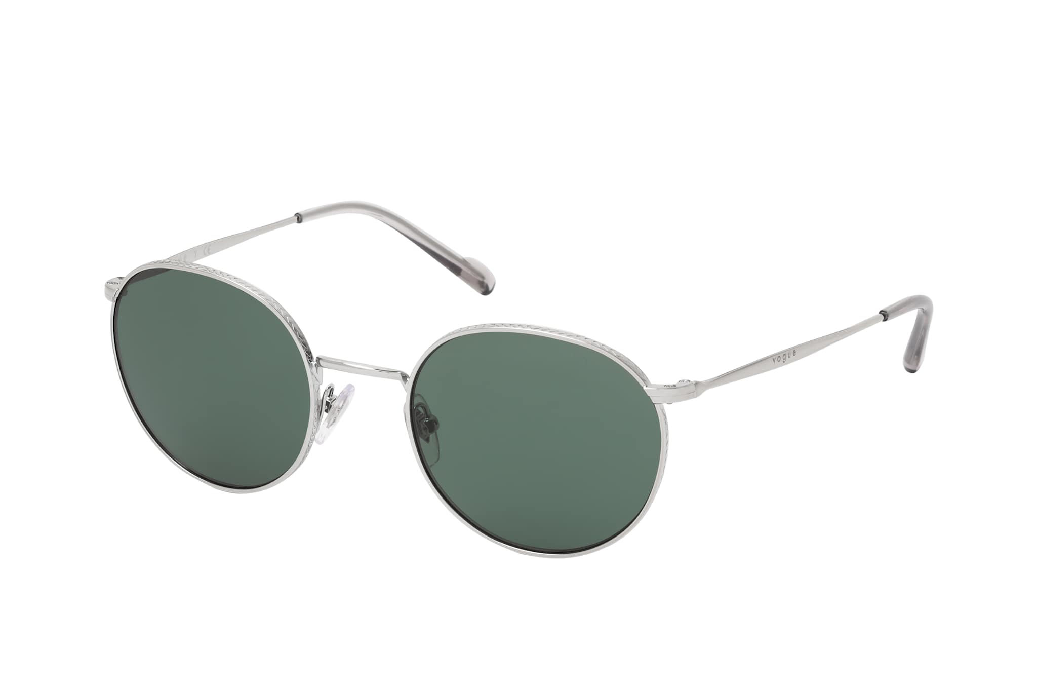 VOGUE Eyewear VO 4182S 323/71, Runde Sonnenbrille Herren. Farbe: Silber, Größe: Medium, Rahmentyp: FULLFRAME, Brillenbreite: 129mm, Glashöhe: 46mm, Material: Metall. Stegbreite: 21mm. Glasfarbe: Grün. Mit UV400-Filter. Hersteller: Luxottica Group S.p.A. Style: EXTRAVAGANT