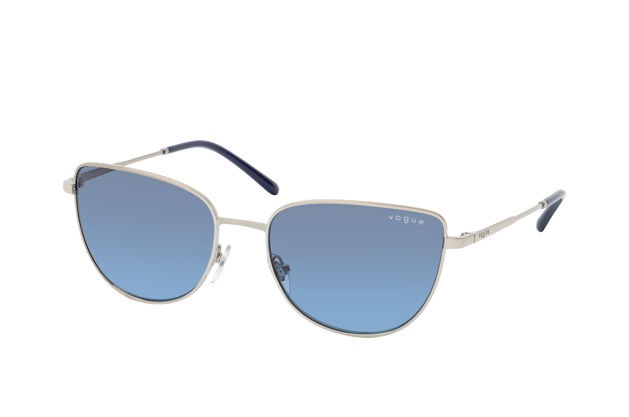 VOGUE Eyewear VO 4233S 323/V1, Cat Eye Sonnenbrille Damen. Farbe: Silber, Größe: Medium, Rahmentyp: FULLFRAME, Brillenbreite: 134mm, Glashöhe: 42mm, Material: Metall. Stegbreite: 17mm. Glasfarbe: Blau. Mit UV400-Filter. Hersteller: Luxottica Group S.p.A. Style: MODERN