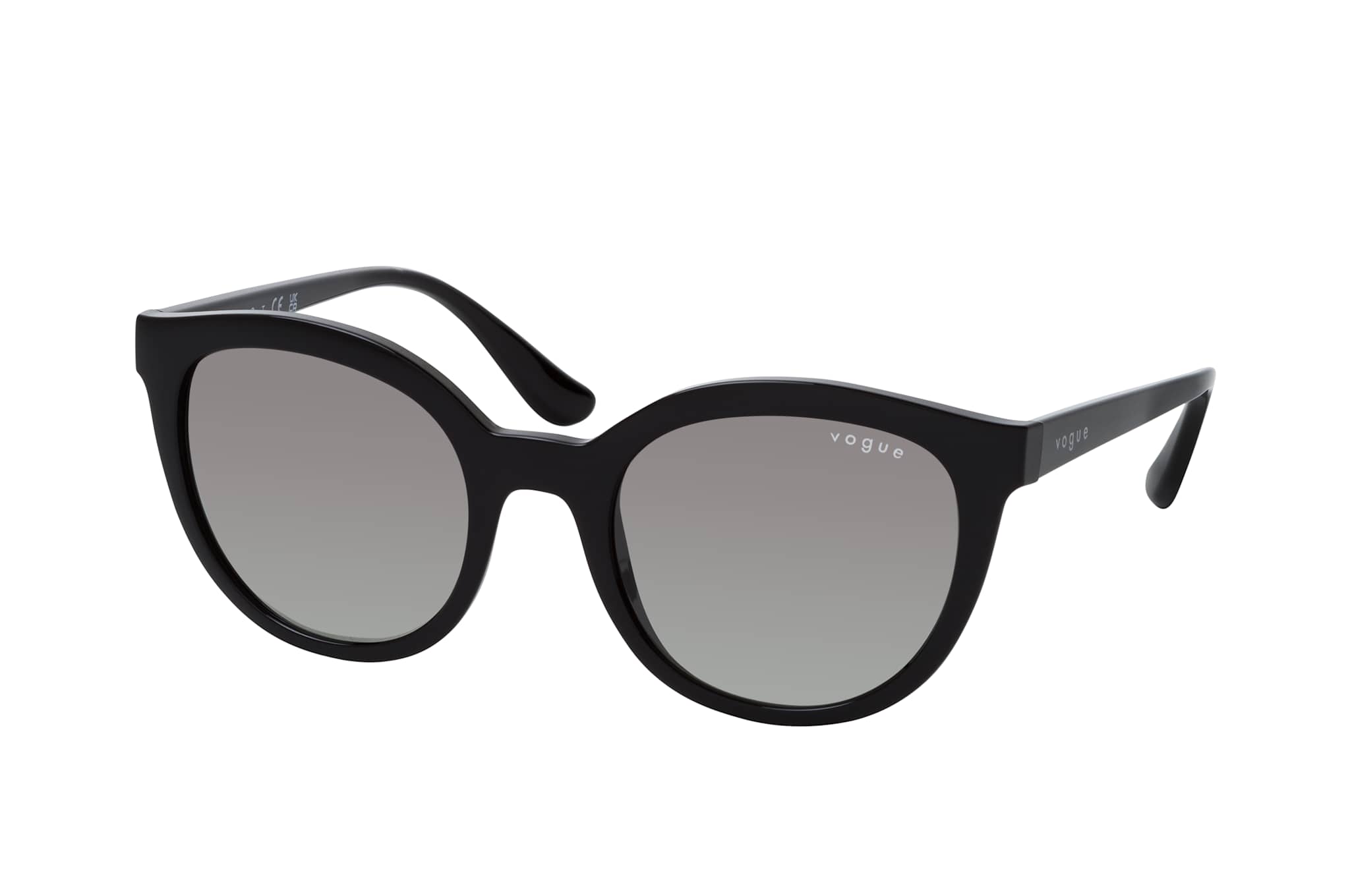 VOGUE Eyewear VO 5427S W44/11, Runde Sonnenbrille Damen. Farbe: Schwarz, Größe: Medium, Rahmentyp: FULLFRAME, Brillenbreite: 134mm, Glashöhe: 45mm, Material: Kunststoff. Stegbreite: 20mm. Glasfarbe: Grau. Mit UV400-Filter. Hersteller: Luxottica Group S.p.A. Style: MODERN